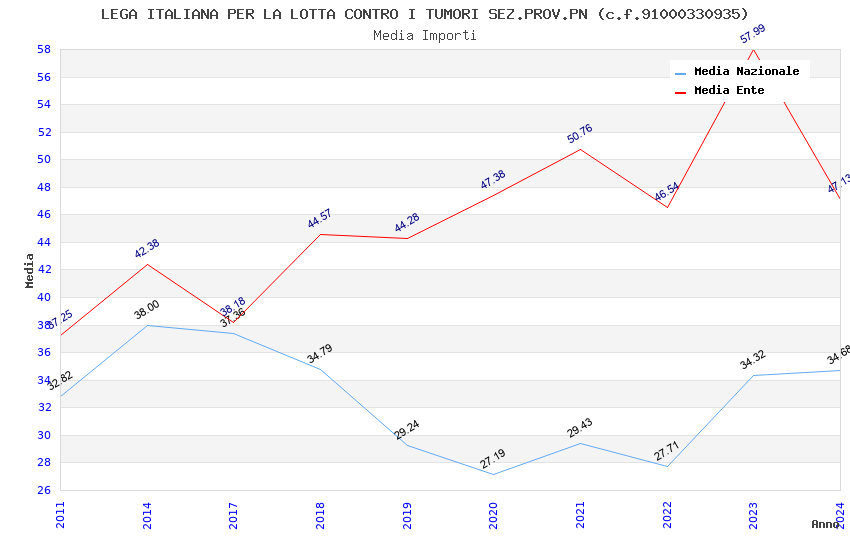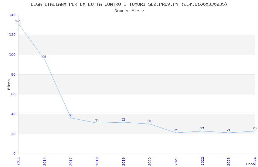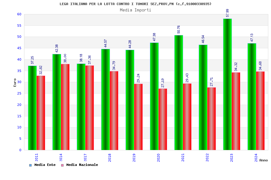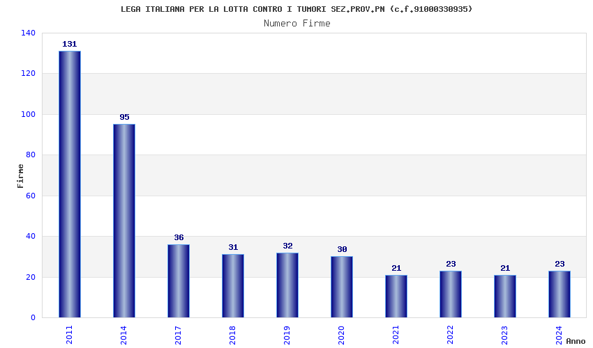 | Anno | Firme | Importi | Media | Naz. | Reg. | Prov. | Comu. |