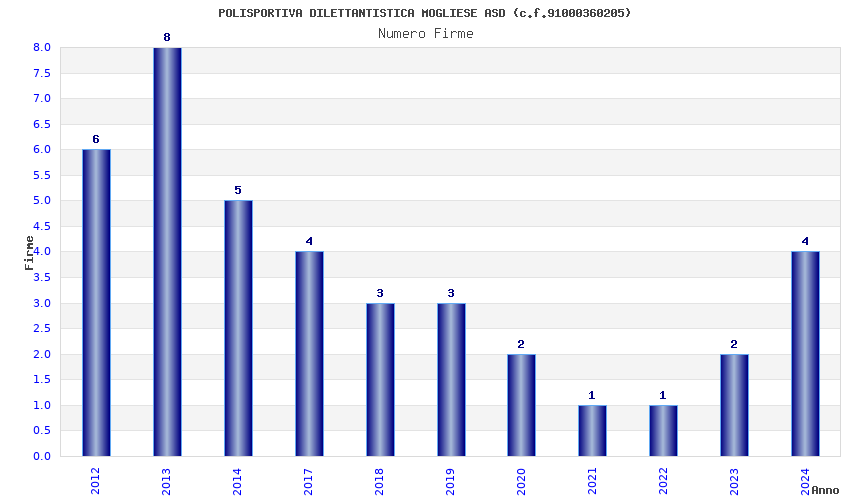 | Anno | Firme | Importi | Media | Naz. | Reg. | Prov. | Comu. |