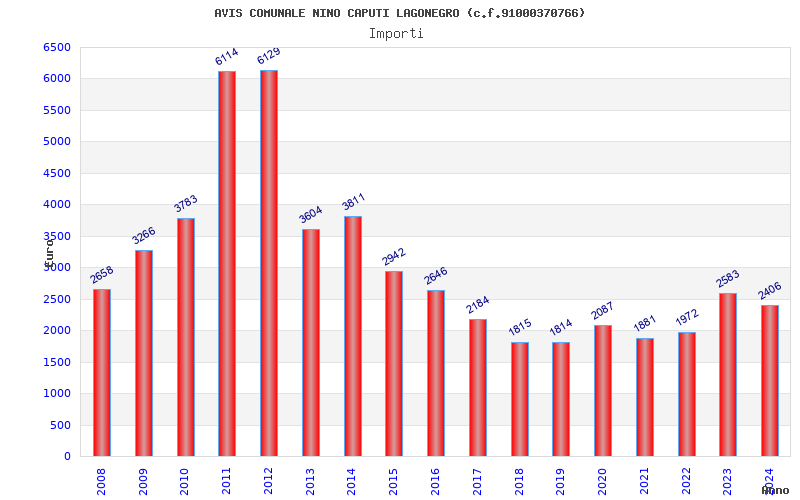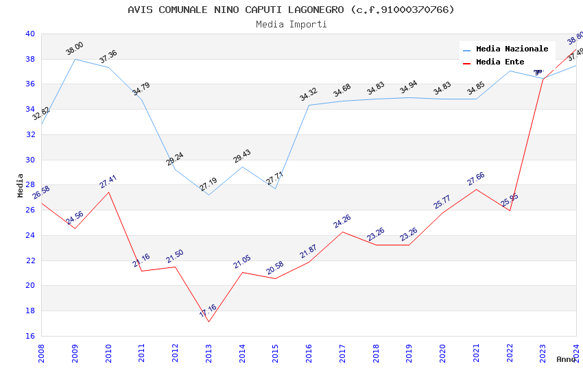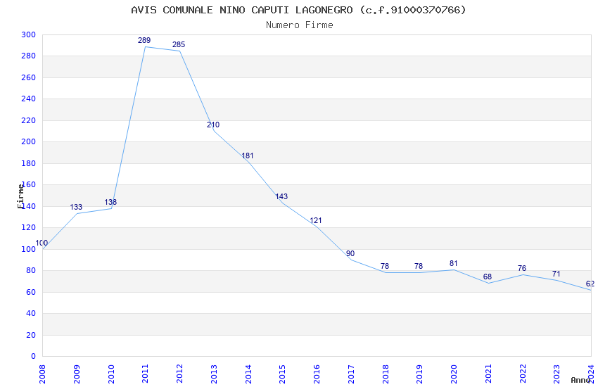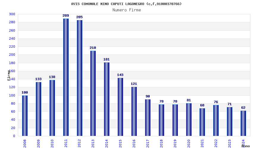 | Anno | Firme | Importi | Media | Naz. | Reg. | Prov. | Comu. |