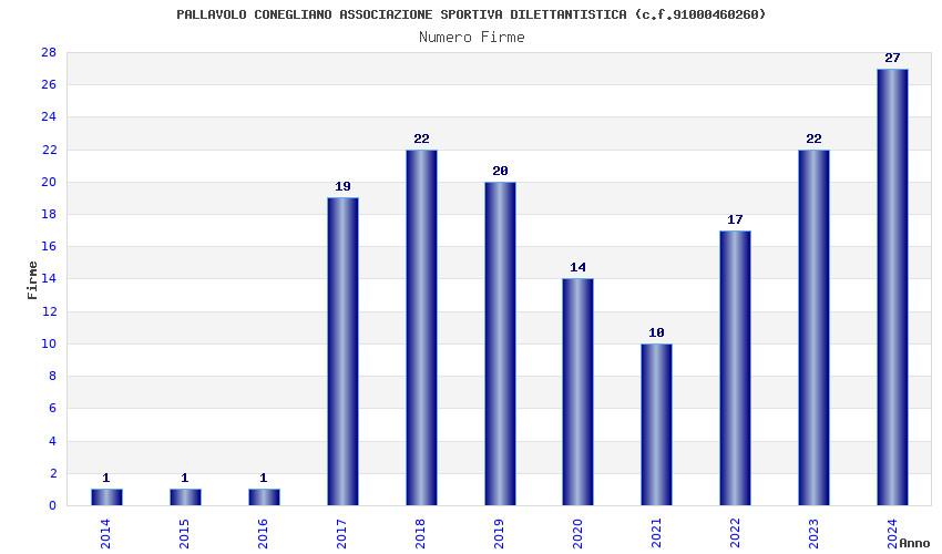 | Anno | Firme | Importi | Media | Naz. | Reg. | Prov. | Comu. |
