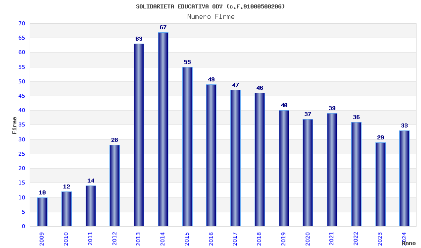 | Anno | Firme | Importi | Media | Naz. | Reg. | Prov. | Comu. |