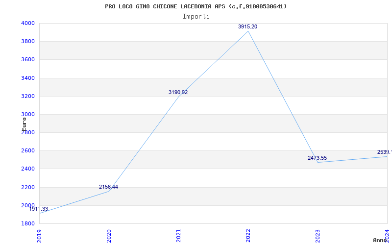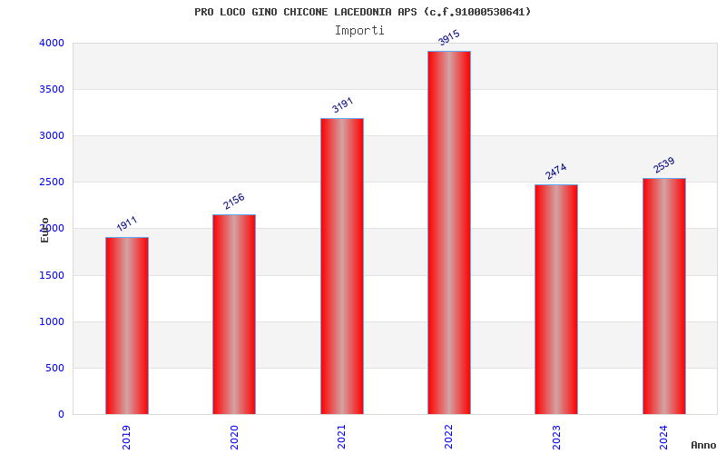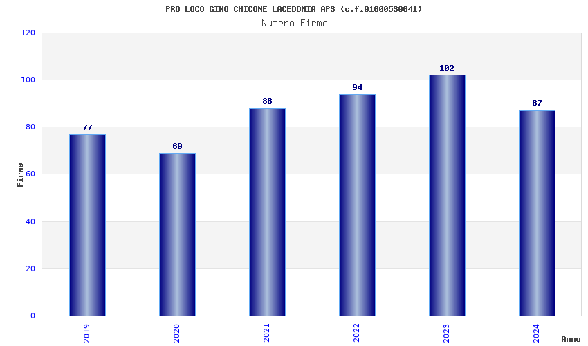 | Anno | Firme | Importi | Media | Naz. | Reg. | Prov. | Comu. |