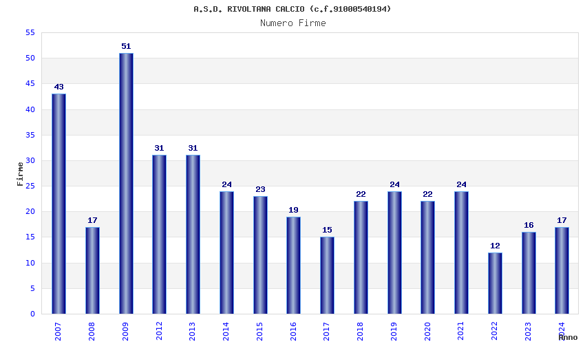 | 2024 | 17 | 381,50 | 22,44 | 55.856 | 10.555 | 497 | 13 |