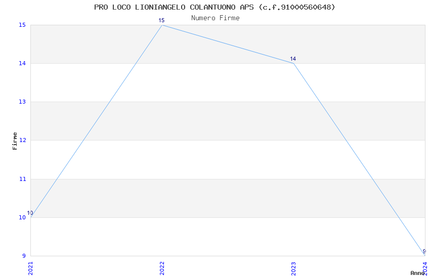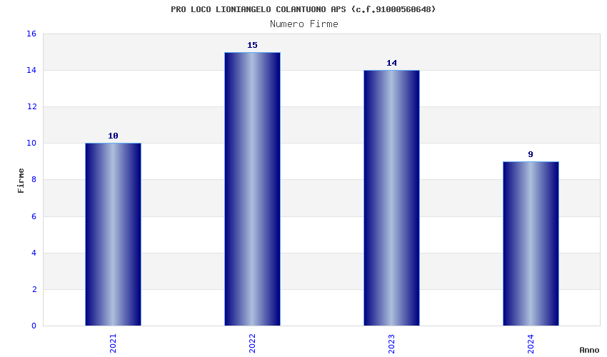 | Anno | Firme | Importi | Media | Naz. | Reg. | Prov. | Comu. |