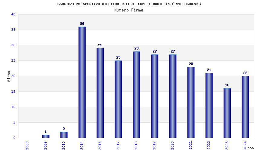 | Anno | Firme | Importi | Media | Naz. | Reg. | Prov. | Comu. |