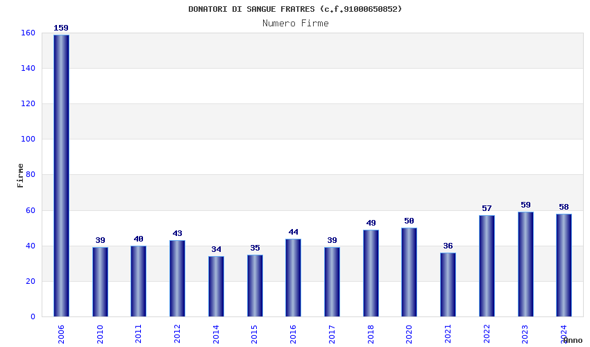 | Anno | Firme | Importi | Media | Naz. | Reg. | Prov. | Comu. |
