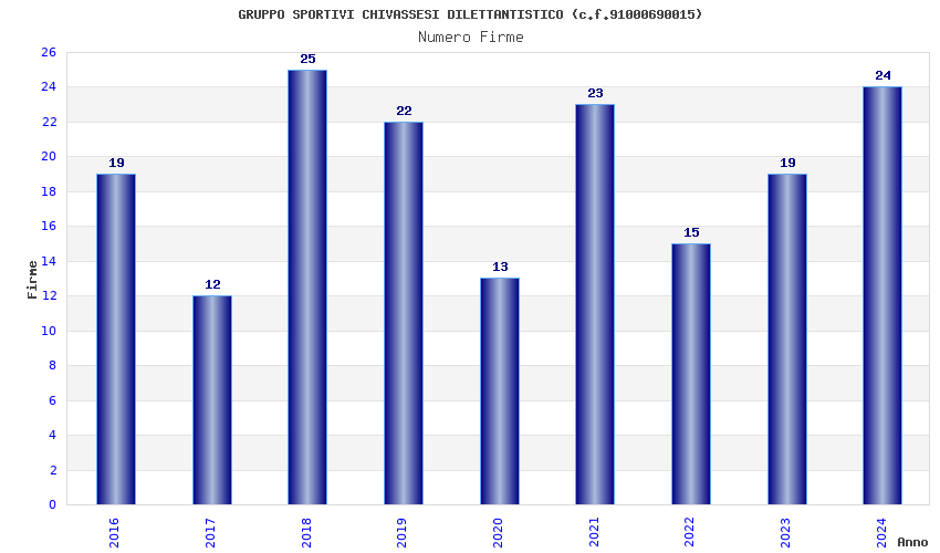 | Anno | Firme | Importi | Media | Naz. | Reg. | Prov. | Comu. |