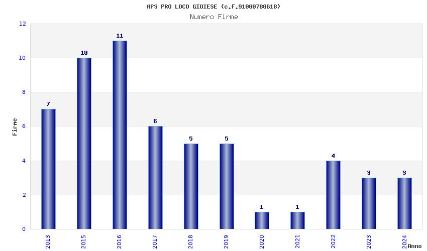 | Anno | Firme | Importi | Media | Naz. | Reg. | Prov. | Comu. |