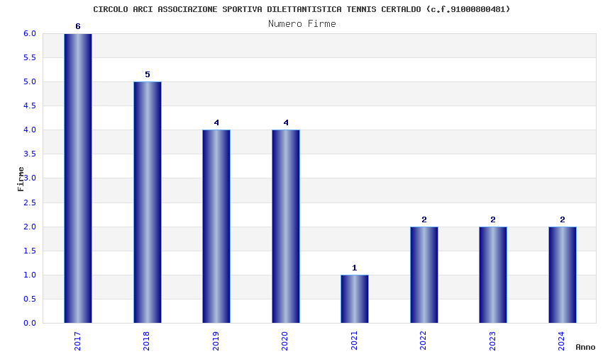 | Anno | Firme | Importi | Media | Naz. | Reg. | Prov. | Comu. |