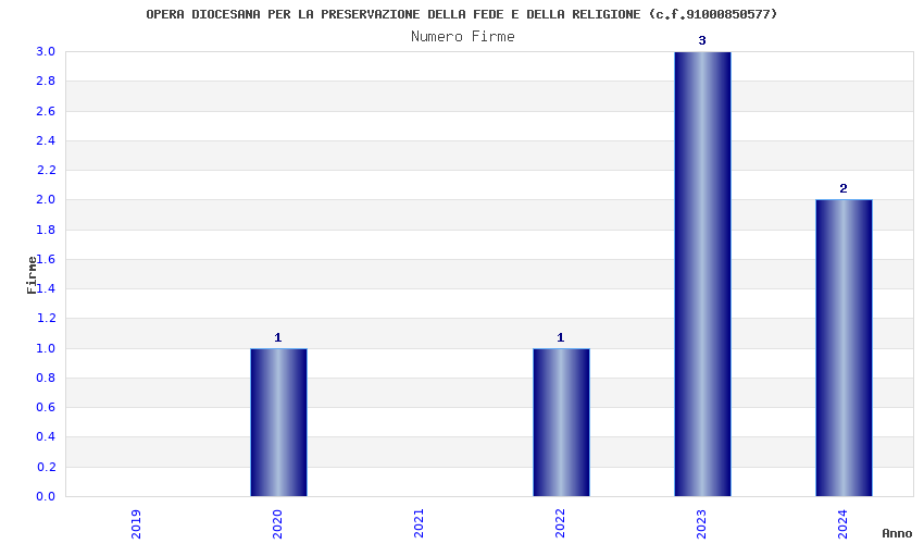 | Anno | Firme | Importi | Media | Naz. | Reg. | Prov. | Comu. |