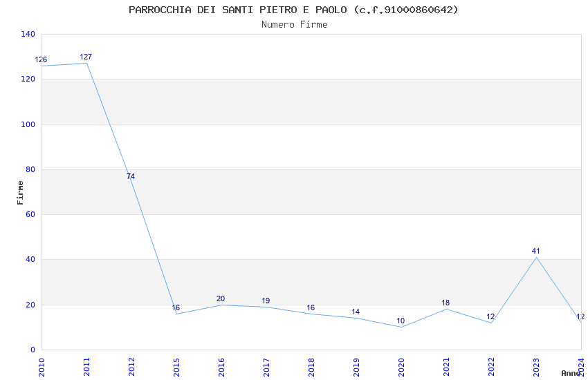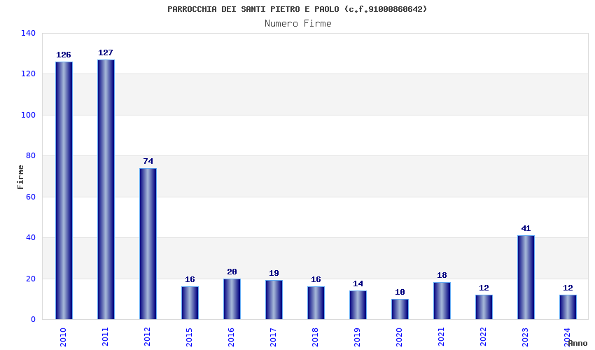 | Anno | Firme | Importi | Media | Naz. | Reg. | Prov. | Comu. |
