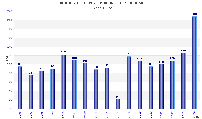 | Anno | Firme | Importi | Media | Naz. | Reg. | Prov. | Comu. |