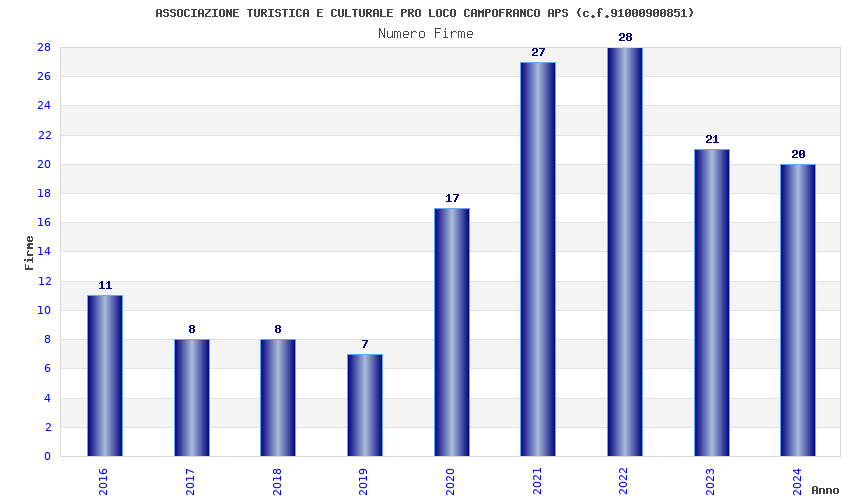 | Anno | Firme | Importi | Media | Naz. | Reg. | Prov. | Comu. |