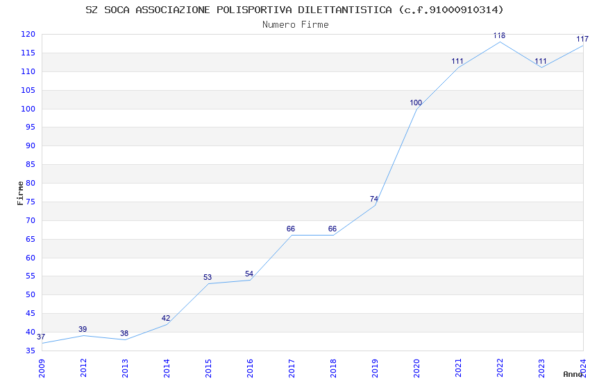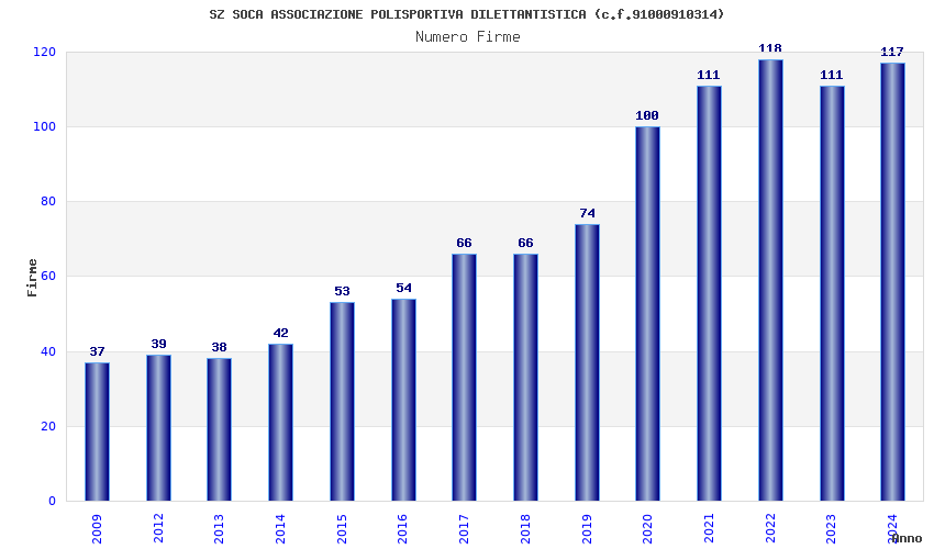 | 2024 | 117 | 3.706,17 | 31,68 | 14.423 | 276 | 30 | 1 |
