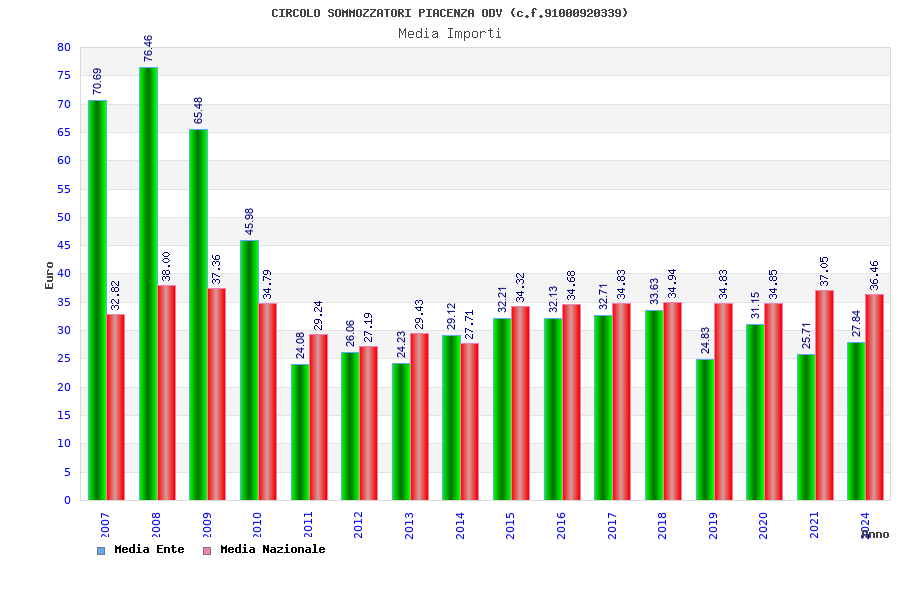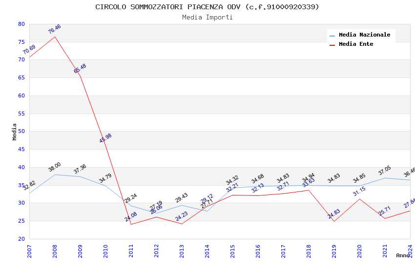| Anno | Firme | Importi | Media | Naz. | Reg. | Prov. | Comu. |