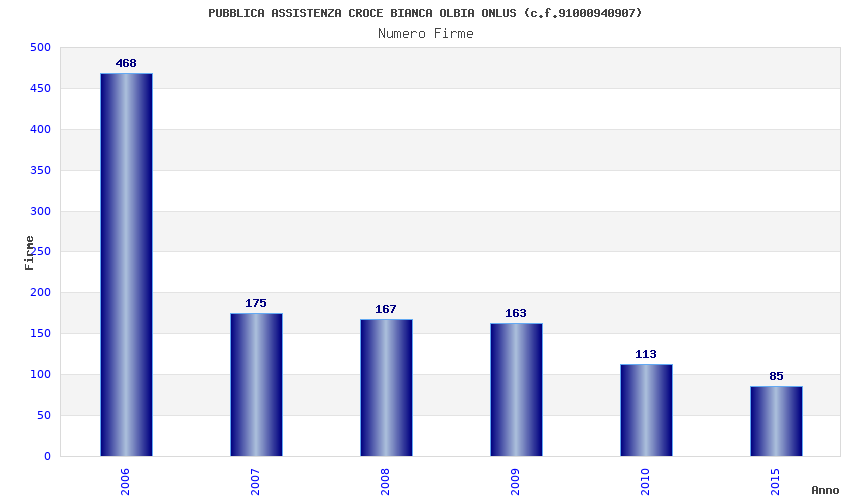| Anno | Firme | Importi | Media | Naz. | Reg. | Prov. | Comu. |