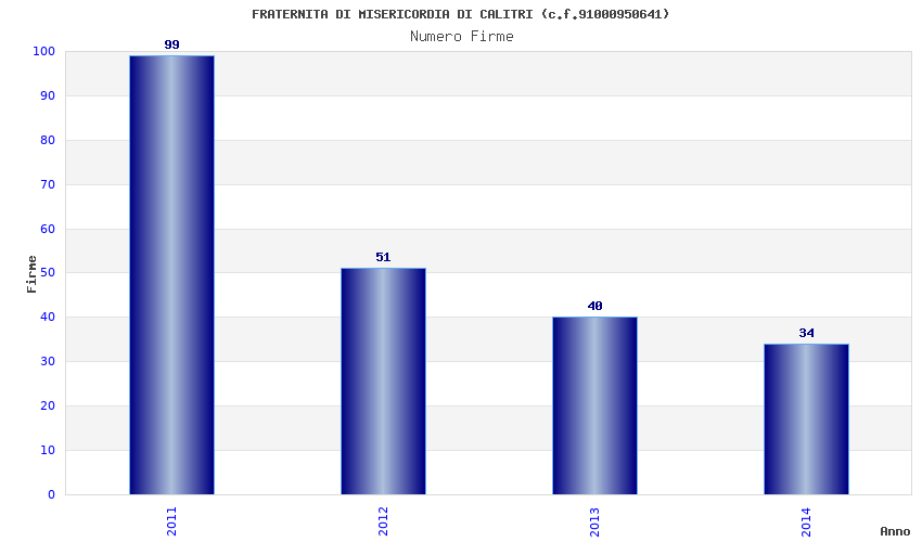| Anno | Firme | Importi | Media | Naz. | Reg. | Prov. | Comu. |