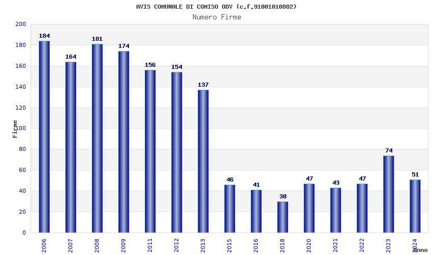 | Anno | Firme | Importi | Media | Naz. | Reg. | Prov. | Comu. |