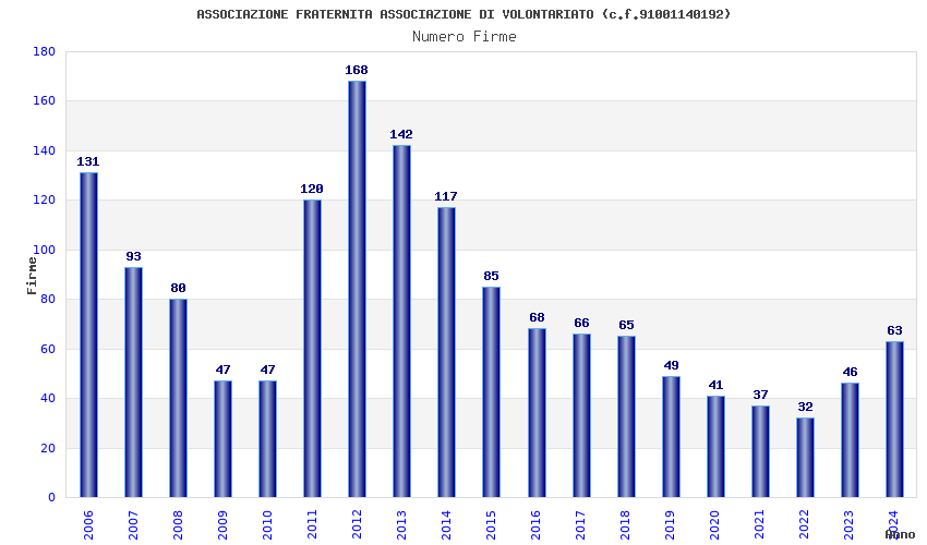| Anno | Firme | Importi | Media | Naz. | Reg. | Prov. | Comu. |