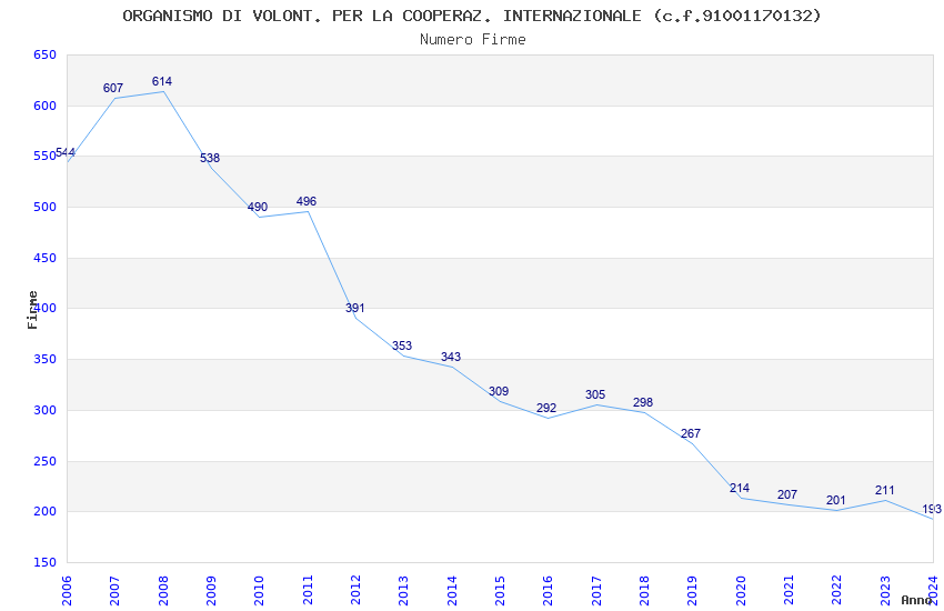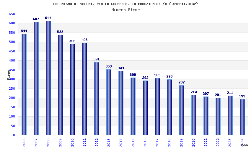 | Anno | Firme | Importi | Media | Naz. | Reg. | Prov. | Comu. |