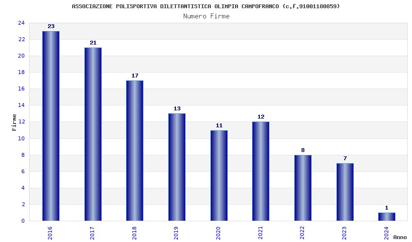 | Anno | Firme | Importi | Media | Naz. | Reg. | Prov. | Comu. |