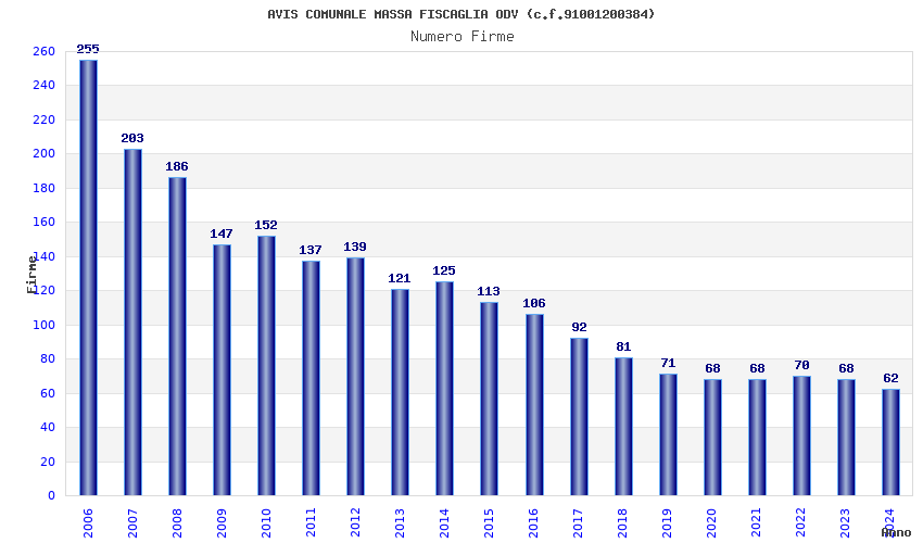 | Anno | Firme | Importi | Media | Naz. | Reg. | Prov. | Comu. |