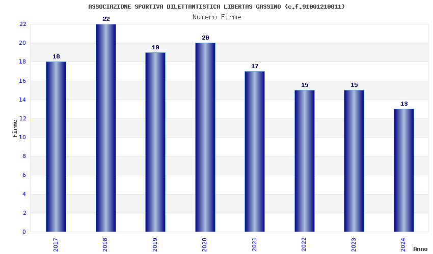 | Anno | Firme | Importi | Media | Naz. | Reg. | Prov. | Comu. |