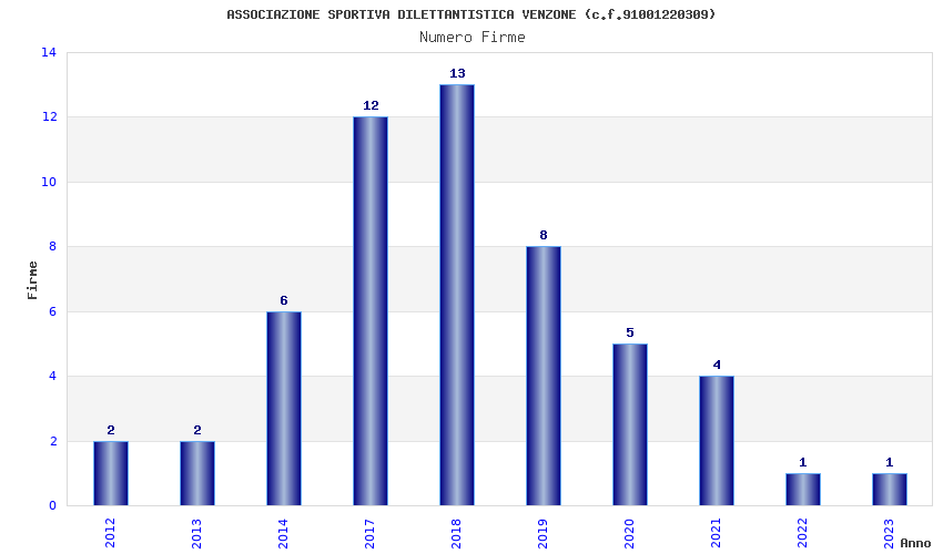 | Anno | Firme | Importi | Media | Naz. | Reg. | Prov. | Comu. |
