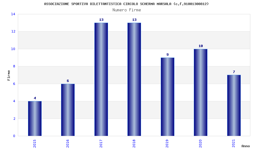 | Anno | Firme | Importi | Media | Naz. | Reg. | Prov. | Comu. |