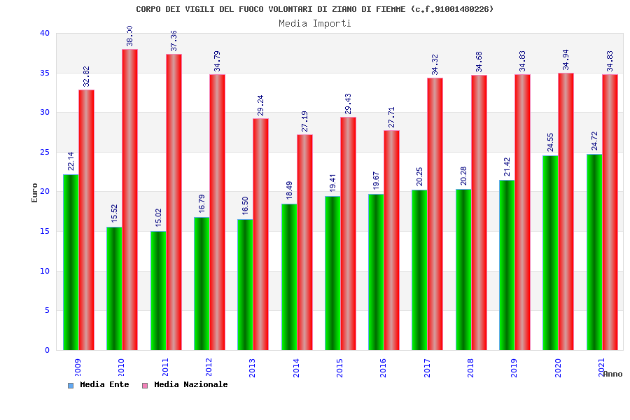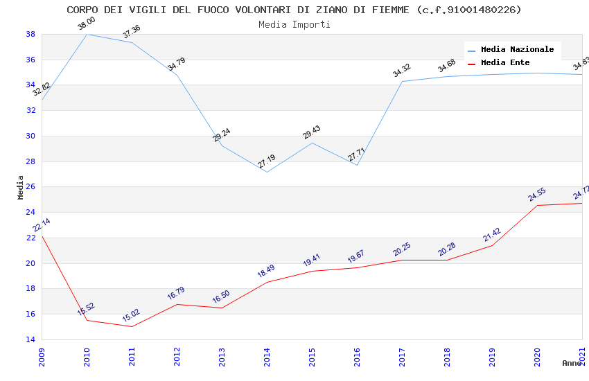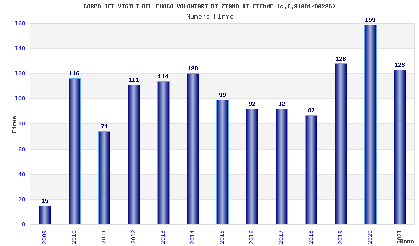 | Anno | Firme | Importi | Media | Naz. | Reg. | Prov. | Comu. |
