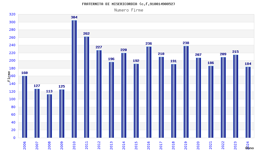 Anno Firme Importi Media Naz. Reg. Prov. Comu.