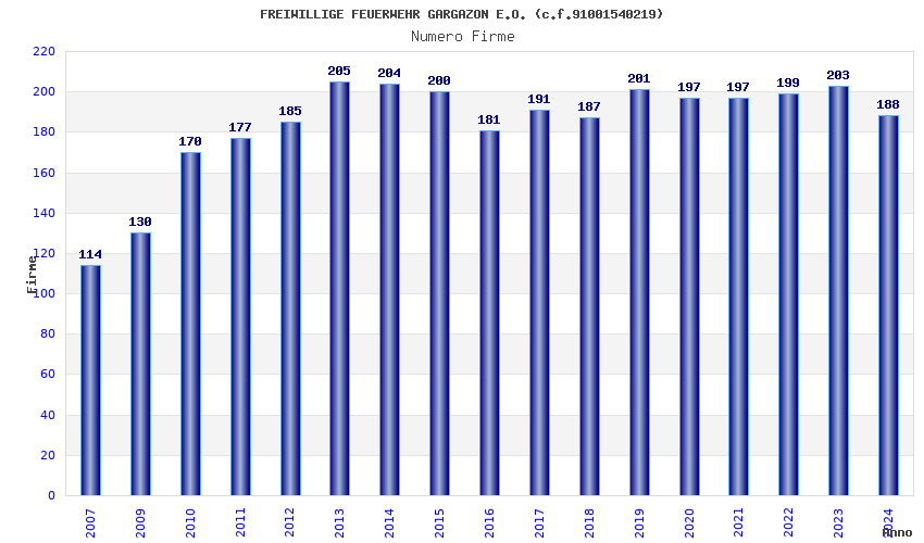 | 2013 | 205 | 5.776,10 | 28,18 | 7.462 | 147 | 80 | 1 |