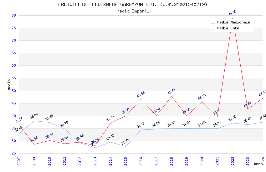 | Anno | Firme | Importi | Media | Naz. | Reg. | Prov. | Comu. |