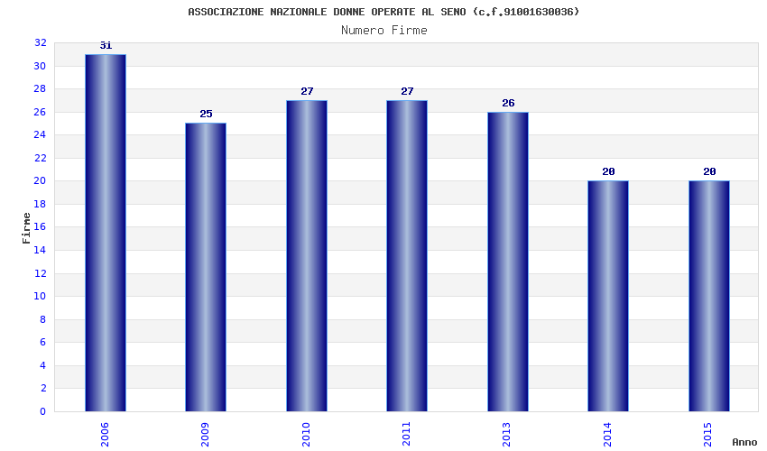 | Anno | Firme | Importi | Media | Naz. | Reg. | Prov. | Comu. |