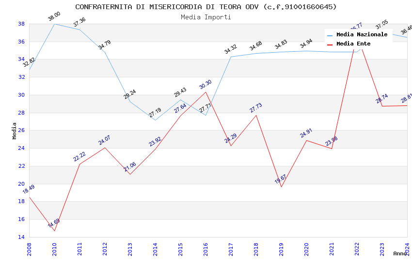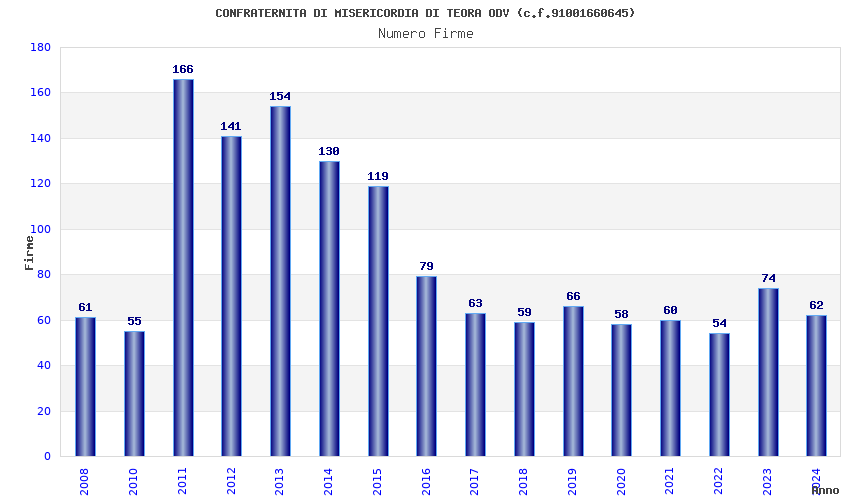 | Anno | Firme | Importi | Media | Naz. | Reg. | Prov. | Comu. |