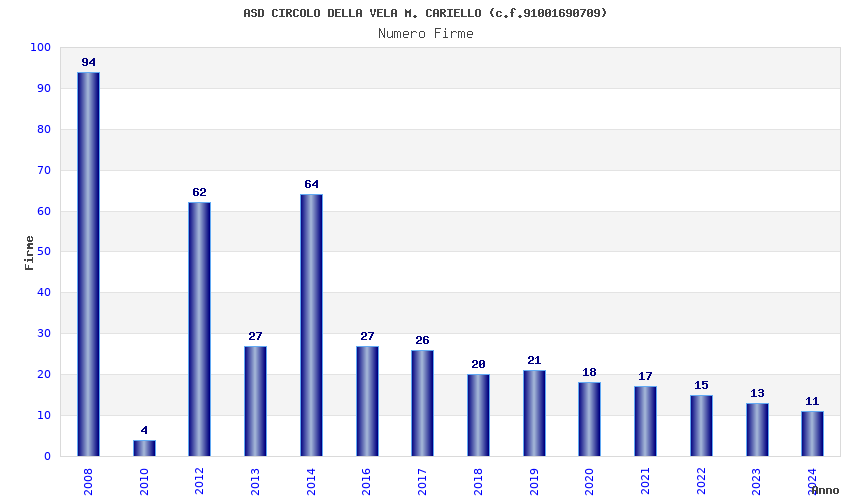 | Anno | Firme | Importi | Media | Naz. | Reg. | Prov. | Comu. |
