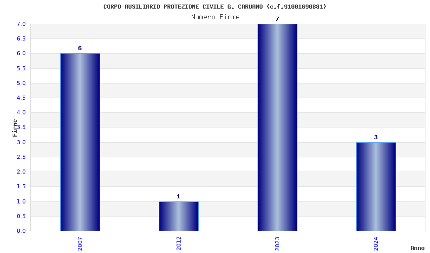 | Anno | Firme | Importi | Media | Naz. | Reg. | Prov. | Comu. |