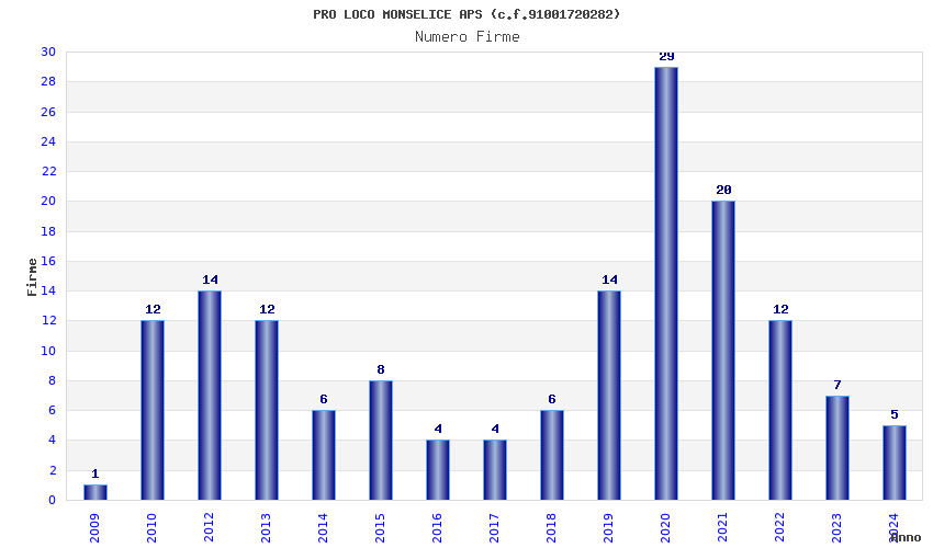 | Anno | Firme | Importi | Media | Naz. | Reg. | Prov. | Comu. |