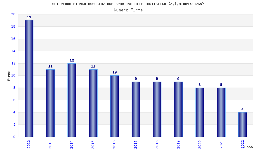 | Anno | Firme | Importi | Media | Naz. | Reg. | Prov. | Comu. |