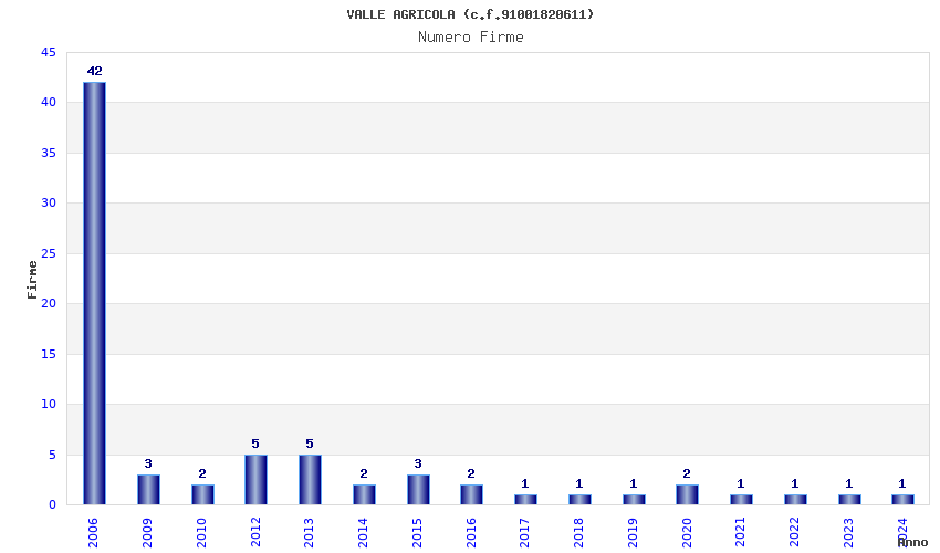 Anno Firme Importi Media Naz. Reg. Prov. Comu.