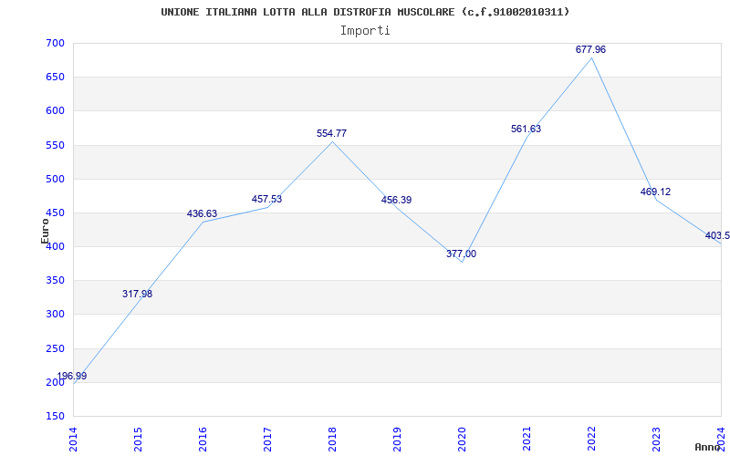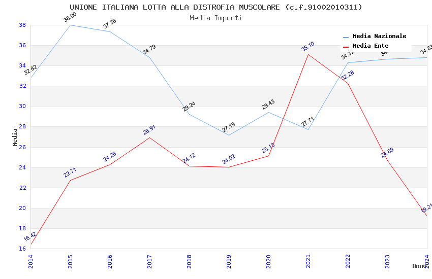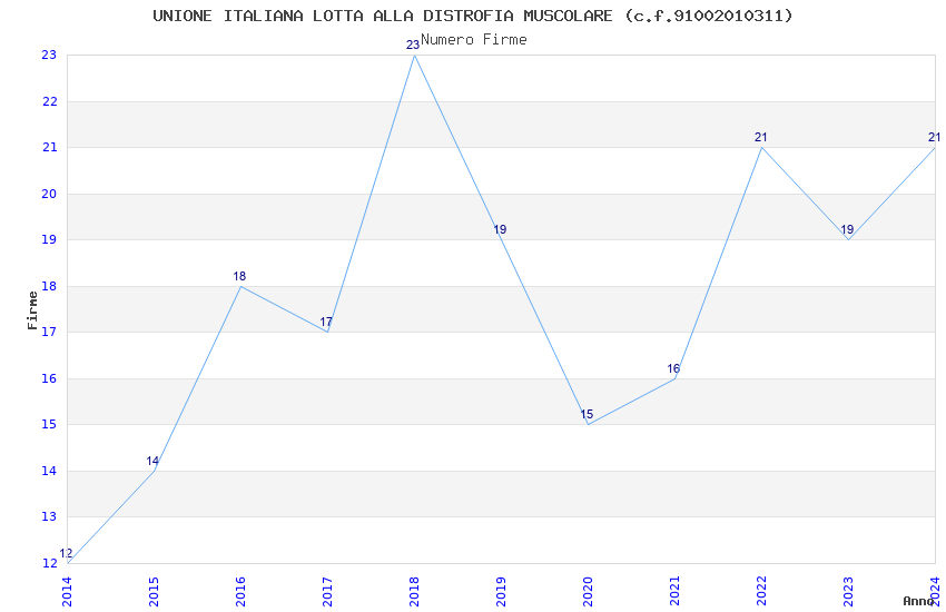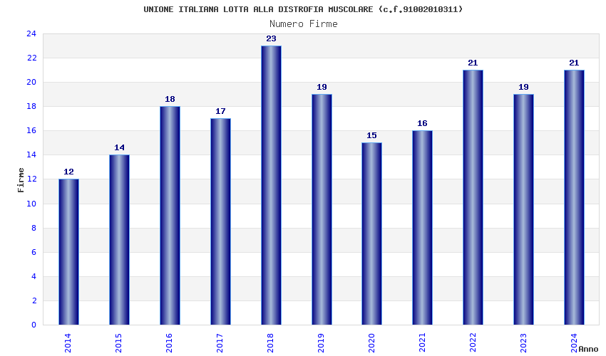 | Anno | Firme | Importi | Media | Naz. | Reg. | Prov. | Comu. |