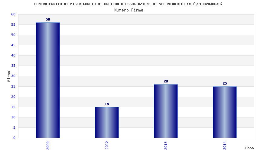 | Anno | Firme | Importi | Media | Naz. | Reg. | Prov. | Comu. |
