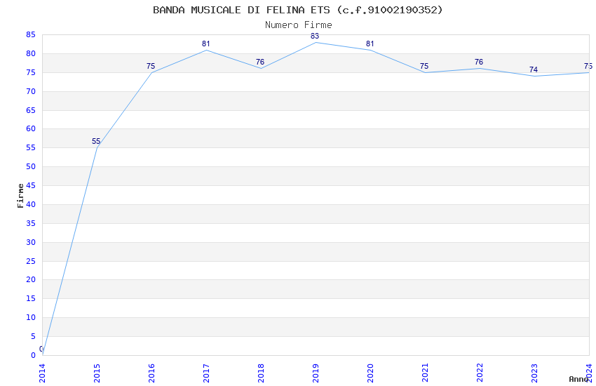 | 2016 | 75 | 2.141,91 | 28,56 | 21.815 | 1.900 | 258 | 11 |