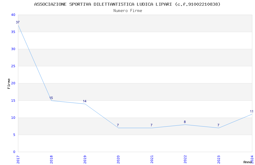 | 2017 | 37 | 730,67 | 19,75 | 39.056 | 2.252 | 385 | 8 |