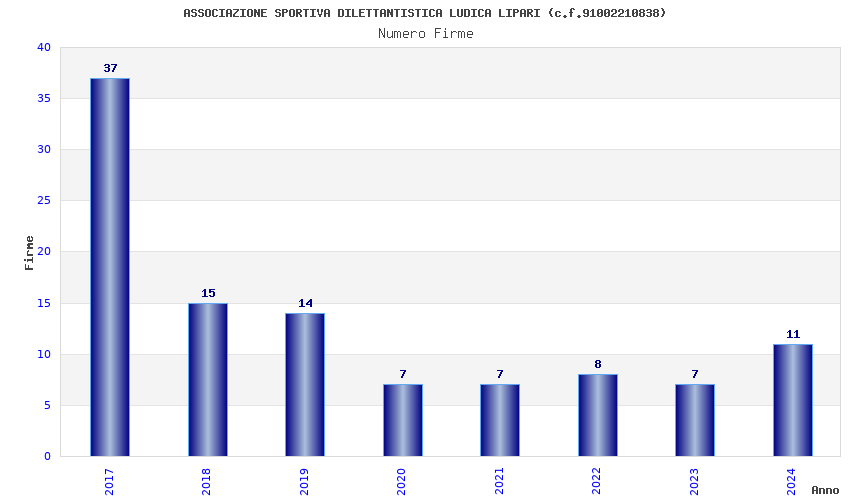 | Anno | Firme | Importi | Media | Naz. | Reg. | Prov. | Comu. |