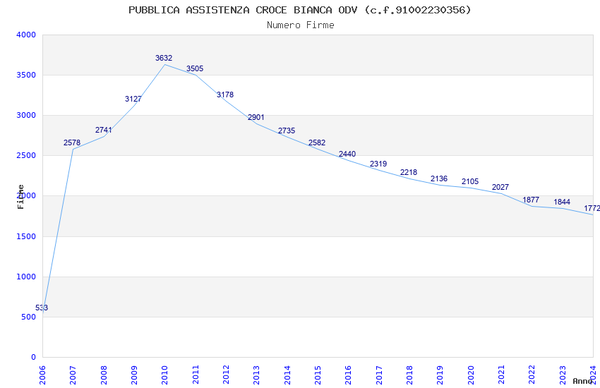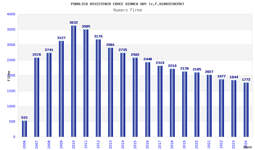 | Anno | Firme | Importi | Media | Naz. | Reg. | Prov. | Comu. |