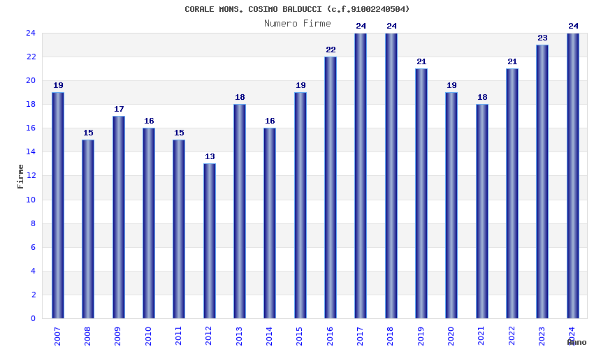| 2017 | 24 | 589,50 | 24,56 | 41.914 | 2.631 | 309 | 18 |