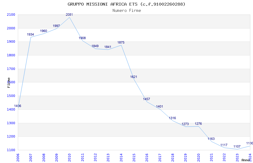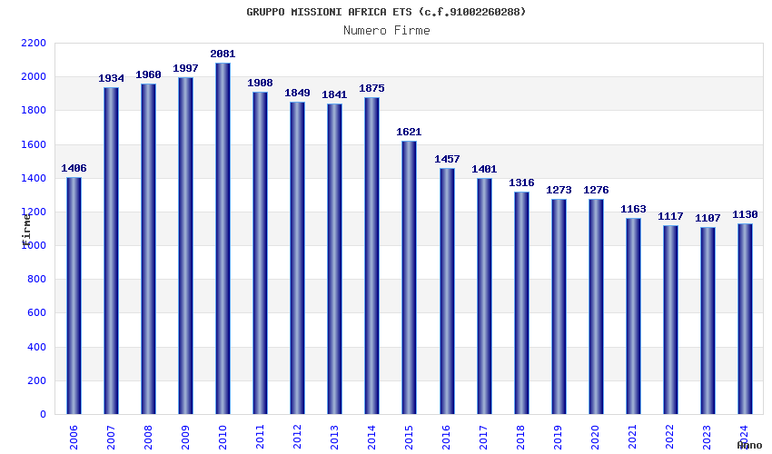 | Anno | Firme | Importi | Media | Naz. | Reg. | Prov. | Comu. |