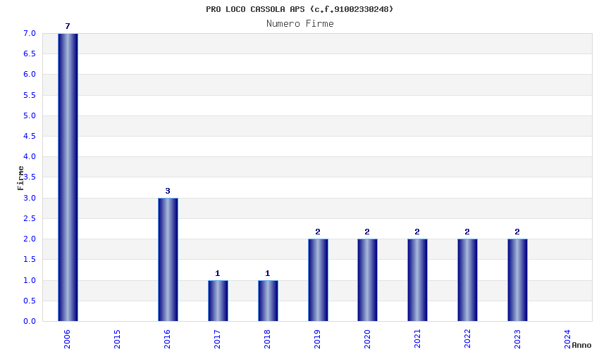 | Anno | Firme | Importi | Media | Naz. | Reg. | Prov. | Comu. |