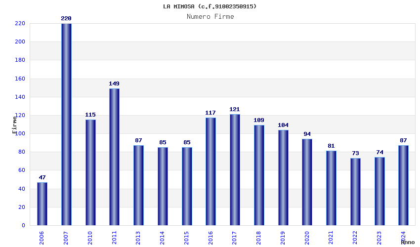 | 2007 | 220 | 3.707,93 | 16,85 | 9.160 | 172 | 21 | 1 |